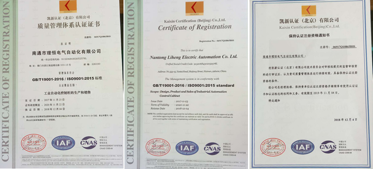12月4日,我司生產(chǎn)基地南通市理恒電氣自動(dòng)化有限公司獲得國(guó)家有關(guān)質(zhì)量體系認(rèn)證管理機(jī)構(gòu)頒發(fā)的保持認(rèn)證注冊(cè)資格通知書(shū)。證書(shū)確認(rèn)我司生產(chǎn)基地符合工業(yè)自動(dòng)化控制柜生產(chǎn)和銷(xiāo)售的管理體系GB/T19001-2016/ISO9001:2015標(biāo)準(zhǔn)。