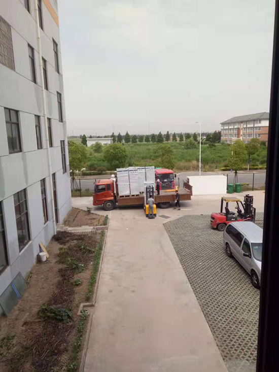 車間工人將柜體卸車