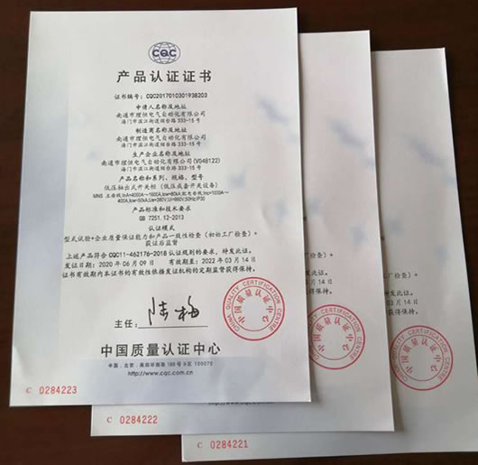 2020年6月9日,經(jīng)國家質(zhì)量認(rèn)證中心確認(rèn),我司生產(chǎn)的低壓抽出式開關(guān)柜、交流低壓配電柜、動力配電箱等一系列低壓成套開關(guān)設(shè)備產(chǎn)品質(zhì)量符合CQC11-462176-2018認(rèn)證規(guī)則要求,再次獲得中國質(zhì)量認(rèn)證中心頒發(fā)的產(chǎn)品認(rèn)證證書。