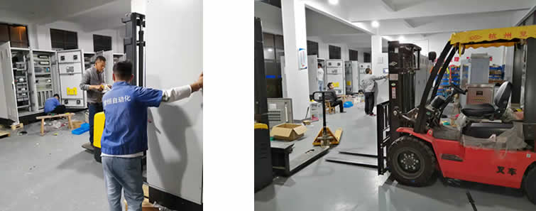 第二生產(chǎn)車(chē)間整齊排列的等待安裝的柜體