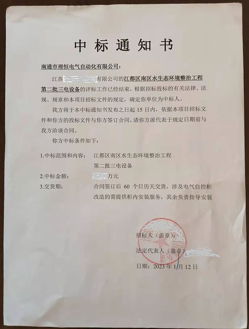 新春伊始,我司在江蘇某環(huán)保公司組織的“江都南區(qū)水生態(tài)環(huán)境整治工程第二批三電設備”的招標活動中獲得中標,從而揭開了新的一年的生產經營序幕,實現(xiàn)開門紅。